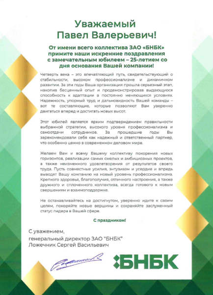 В эти дни Промагролизинг принимает особенно много теплых слов - нас поздравляют с 25-летием партнеры, коллеги и официальные лица нашей страны. Этот поток внимания стал для нас лучшим доказательством того, что мы движемся в правильном направлении. И мы признательны каждому за ваши добрые слова и поддержку.