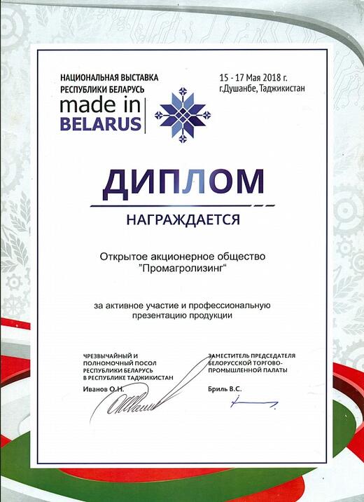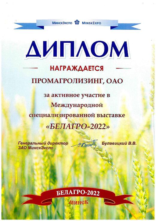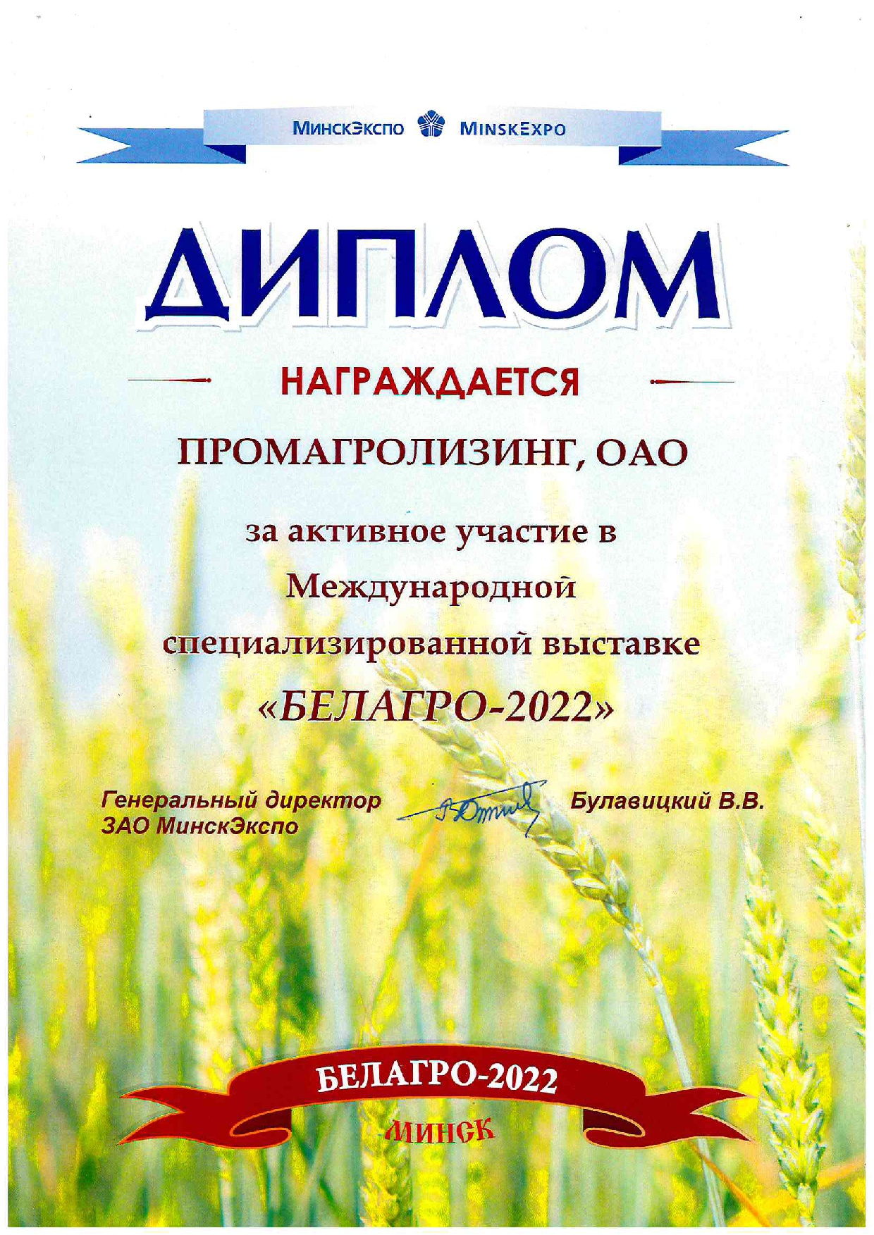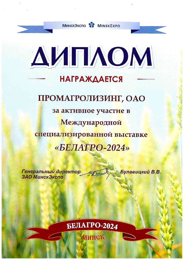 Диплом за активное участие в Международной специализированной выставке "БЕЛАГРО-2024"