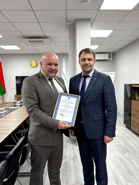 В торжественной обстановке состоялось вручение одной из самых почетных наград объединения профсоюзов генеральному директору ОАО «Промагролизинг» Павлу Каротких. Благодарность за многолетнюю плодотворную работу по защите прав работников и активное участие в жизни профсоюзной организации лично озвучил председатель Минской областной организации профсоюза банковских и финансовых работников Сергей Ковинько.