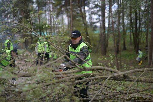 Руководство ОАО «Промагролизинг» и ОАО «Банк развития Республики Беларусь», представители организаций банковского холдинга и Докшицкого районного исполнительного комитета в этот день стали одной командой, убирая мусор, активно расчищая дикорастущие кустарники, растения, сухую траву, устраняя поврежденные деревья.